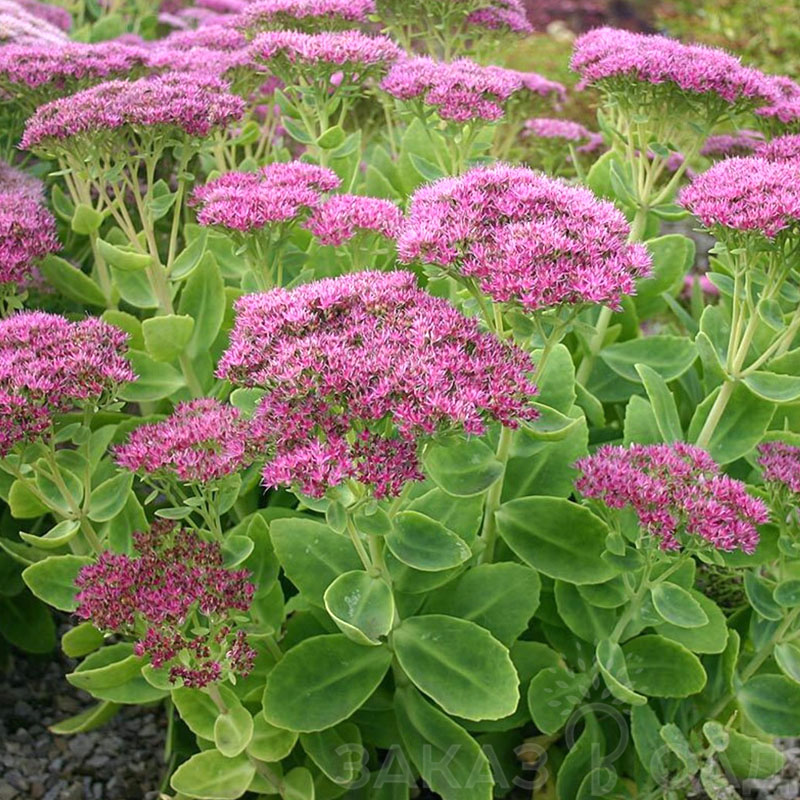 Седум видный "Бриллиант" – это декоративный многолетний суккулент, достигающий высоты от 40 до 80 см. Его ярко-розовые цветы собраны в крупные щитковидные соцветия диаметром до 15 см, что придает растению особую привлекательность. Листья седума толстые, светло-зеленого цвета, с эллиптической формой и легким сизым налетом на поверхности.