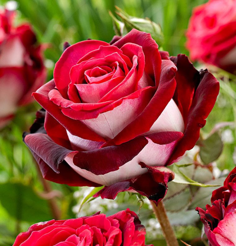 Саженец чайно-гибридной розы Осирия (Osiria) – это уникальный сорт, который привлекает внимание своими изысканными декоративными качествами. Лепестки этой розы окрашены в элегантные красно-белые тона, создавая гармоничный и благородный контраст. Внутренняя часть лепестков насыщенно-красная, а внешняя – ослепительно белая, что придает цветку особую выразительность. Сорт был выведен в 1978 году и до сих пор остается популярным среди садоводов.